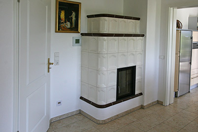 - Verkleidung mit schon vorhandenen Kacheln, die von mehreren Kachelöfen erhalten sind.