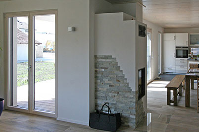 Diese von uns erstellten Feuerstätten speisen einen Teil Ihrer Wärme in einen Pufferspeicher ein. Über Heizkörper, Fußbodenheizung usw. kann diese Wärme dann im gesamten Haus verteilt werden.